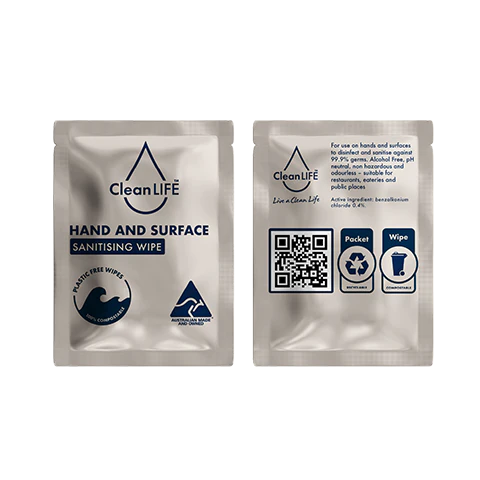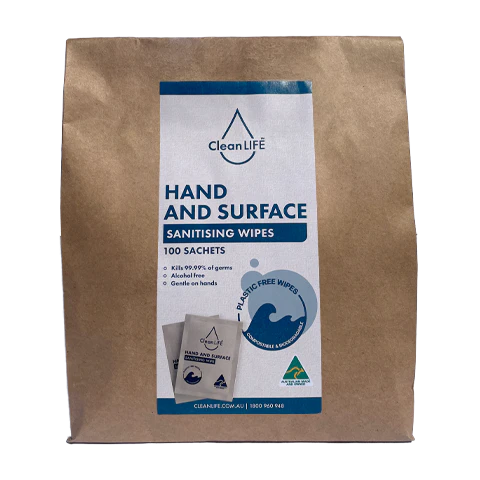 CleanLIFE Hand and Surface wipes disinfect and sanitise against 99.99% of germs. Alcohol-free, pH neutral, non-hazardous and odourless – suitable for hands and non-porous surfaces.